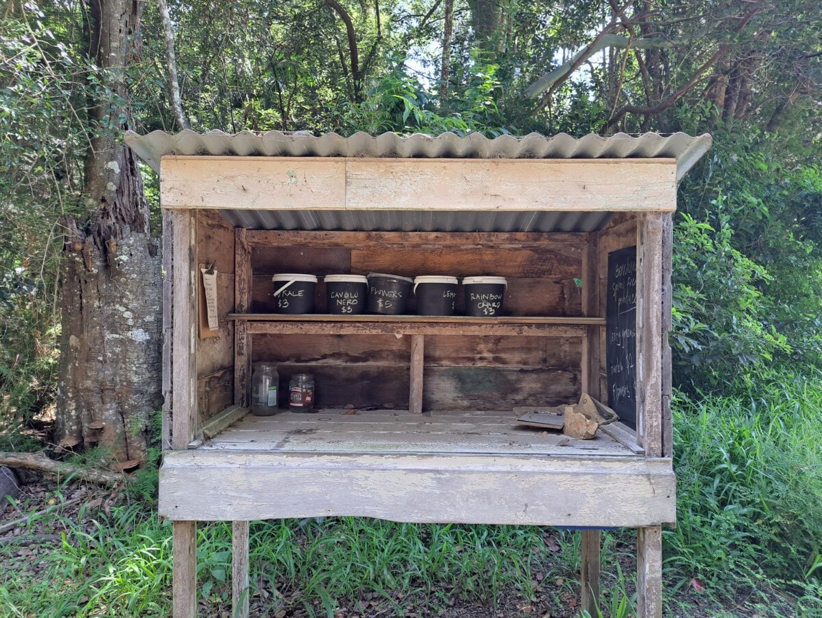 This stall was sold out the day we visited but there were containers indicating it had flowers, chard and kale for sale.