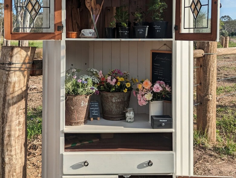 Come for a drive to be inspired by a cottage farmhouse feel… Fresh flowers, homegrown produce, potted plants and timber home goods.