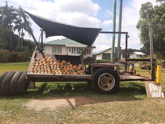 Two lots of pineapples within a couple hundred metres of each other. Also some hay.